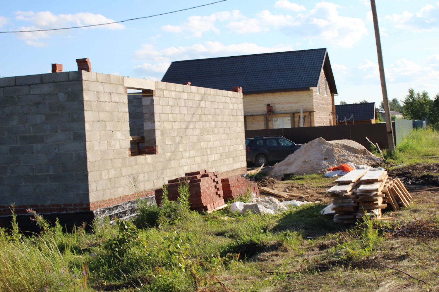 - Строительство фундамента;